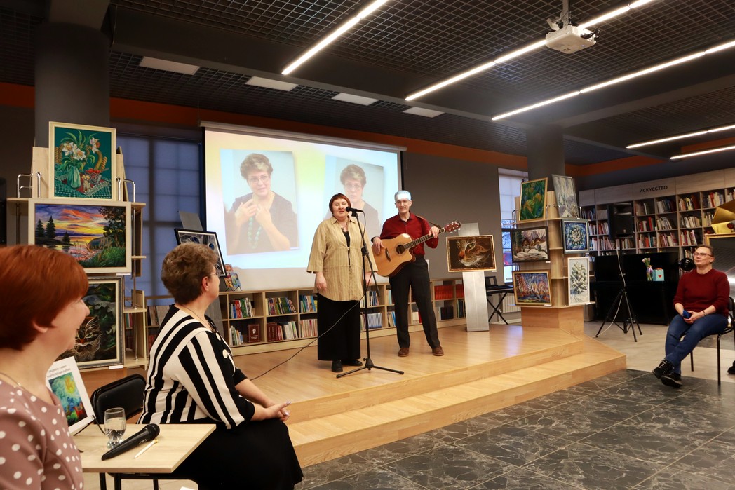 Во время свободного микрофона выступающие открывали важные черты автора выставки: талантливый мастер; строгий, требовательный прежде всего к себе человек; мудрый педагог. В благодарность своему учителю Светлана Федотенко в дуэте с супругом Романом исполнила песню.