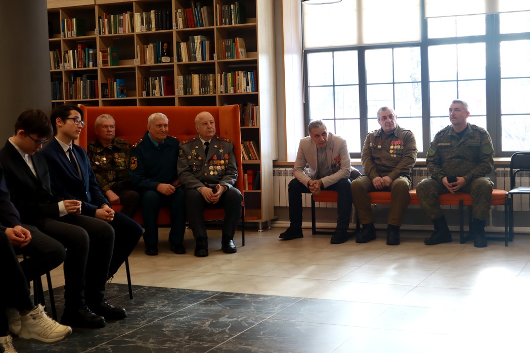 После краткого обзора событий афганской войны, учащиеся школ № 2 и воспитанники казачьего кадетского корпуса пообщались с участниками боевых действий.