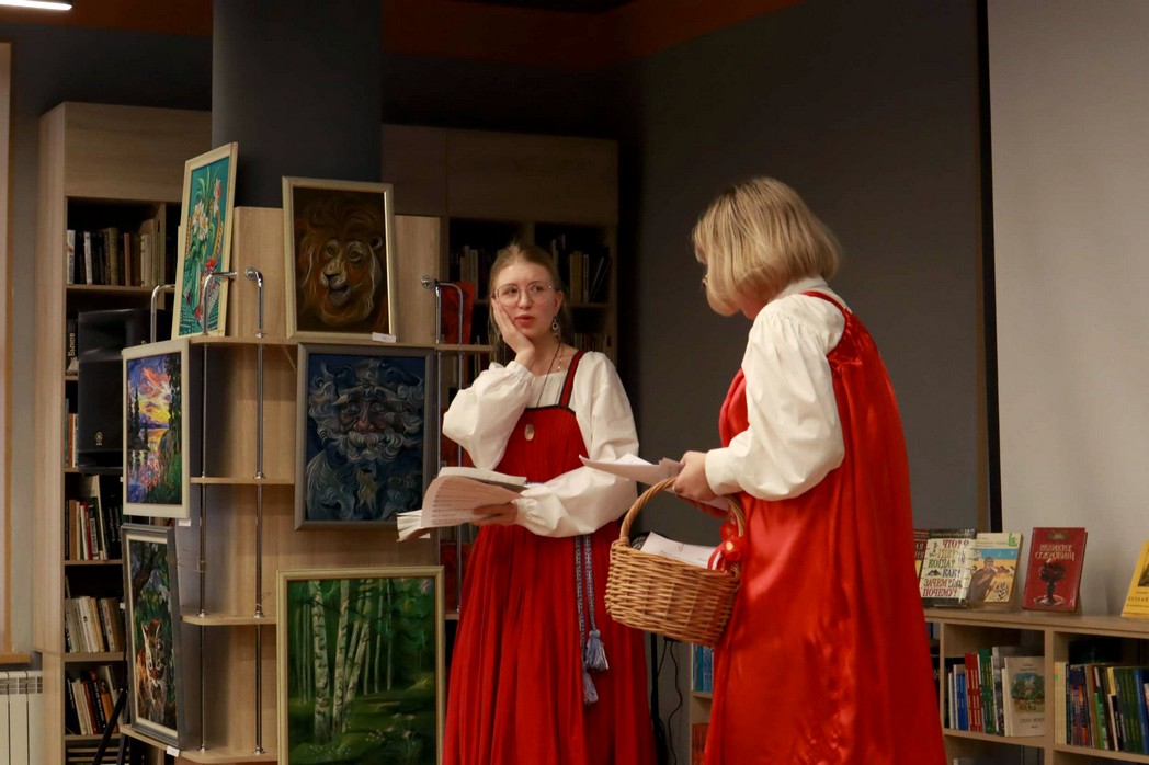 Колоритны и другие герои произведения. Роли жён стрельцов Дарьи и Лидки на презентации сыграли библиотекарь Марина Аксёнова и участница юношеской литературно-театральной группы «МиЛиТ» София Сафонова. Девушки прочитали также фрагмент романа, где описан восточный базар.