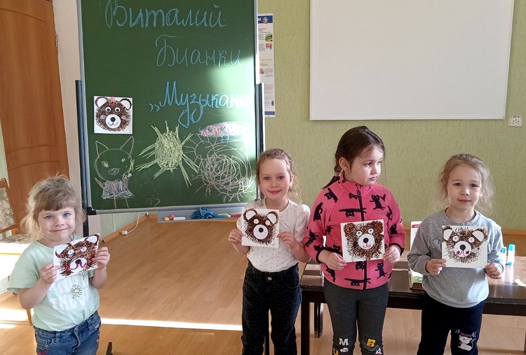 В финале встречи ребята приняли участие в мастер-классе по изготовлению медвежонка из рассказа «Музыкант».