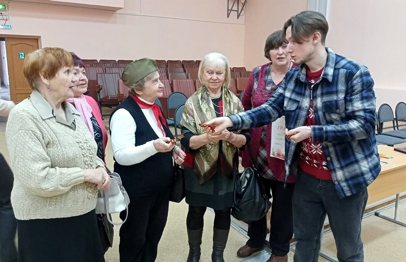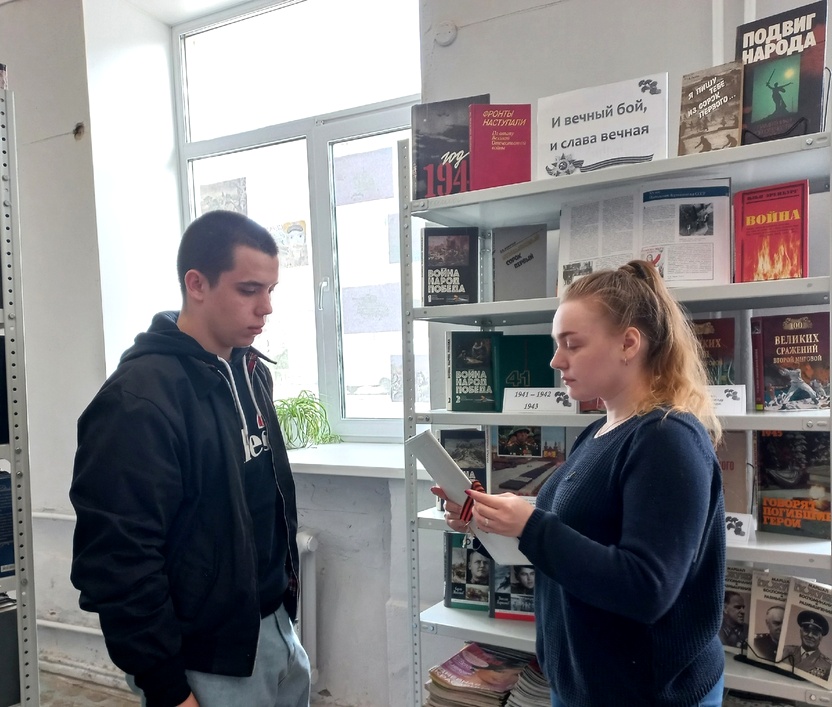 Члены молодежного библиотечного объединения «Уникумы» вышли на улицы города, чтобы раздать георгиевские ленты жителям. В нескольких районах города: Северо-западном, районе проспекта Гагарина, на улице Карла-Маркса библиотекари раздавали прохожим ленты, задавая вопросы об одном из самых страшных событий в истории России. Участники отвечали на вопросы о том, что такое «Дорога жизни», в каком городе проходил суд над руководителями гитлеровской Германии, где состоялся первый Парад Победы, сколько дней длилась война и другие. Также участников просили рассказать, о подвигах каких героев войны они знают.