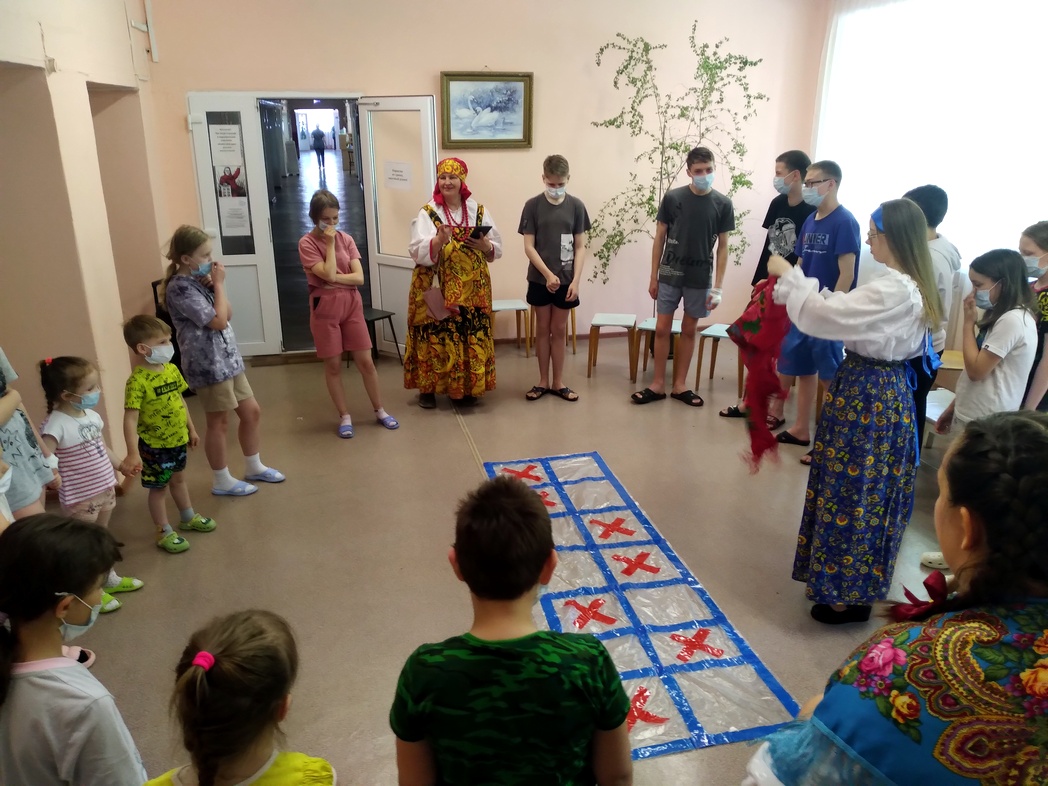 Более 30 маленьких пациентов больницы и сотрудники медицинского учреждения вместе с библиотекарями закружились в народных хороводах, сыграли в фольклорные игры «Ходим в гости», «Золотые ворота», «Селезень утку догонял», приняли участие в конкурсах «Дойди до приза», «Поймай палку» и даже попробовали попрыгать через большую скакалку.