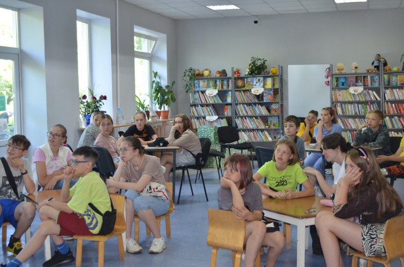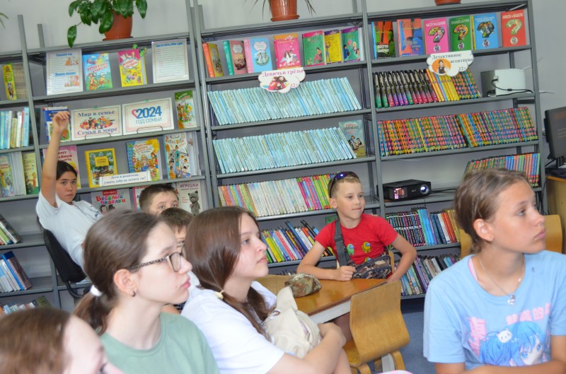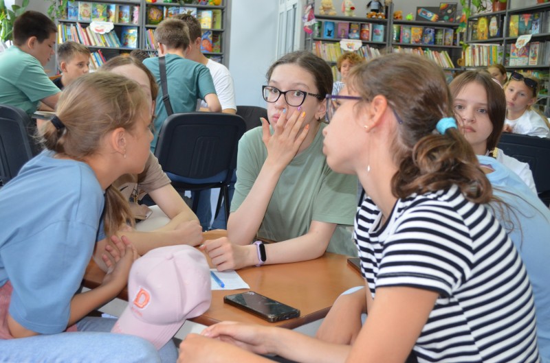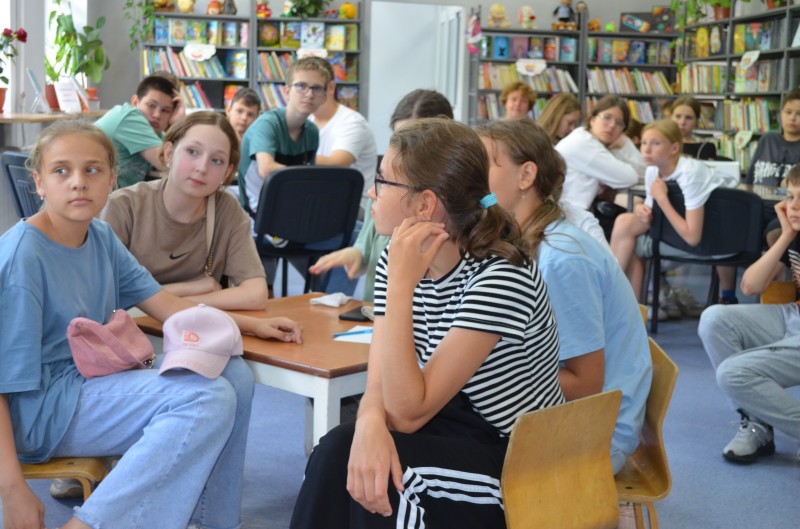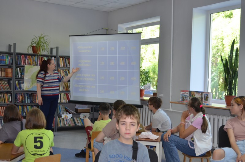 Ведущая Любовь Десенко рассказала детям о страшном дне начала войны 22 июня, о том, как наши земляки доблестно сражались на фронте и в тылу, приближая долгожданную Победу. После этого ребята приняли участие в интеллектуально-познавательной «Своей игре». Темами игры были «Обелиски памяти», «Имя героя на карте города», «Оружие Победы» и «Искусство на войне».