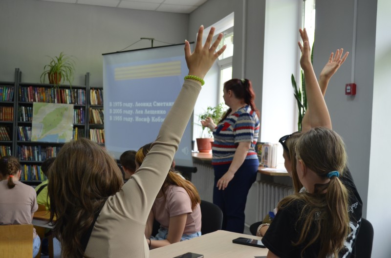 Сегодня в Центральной детской библиотеке для детей оздоровительных лагерей школ №35 и №34 прошел час памяти «Я камнем стал, но я живу».
