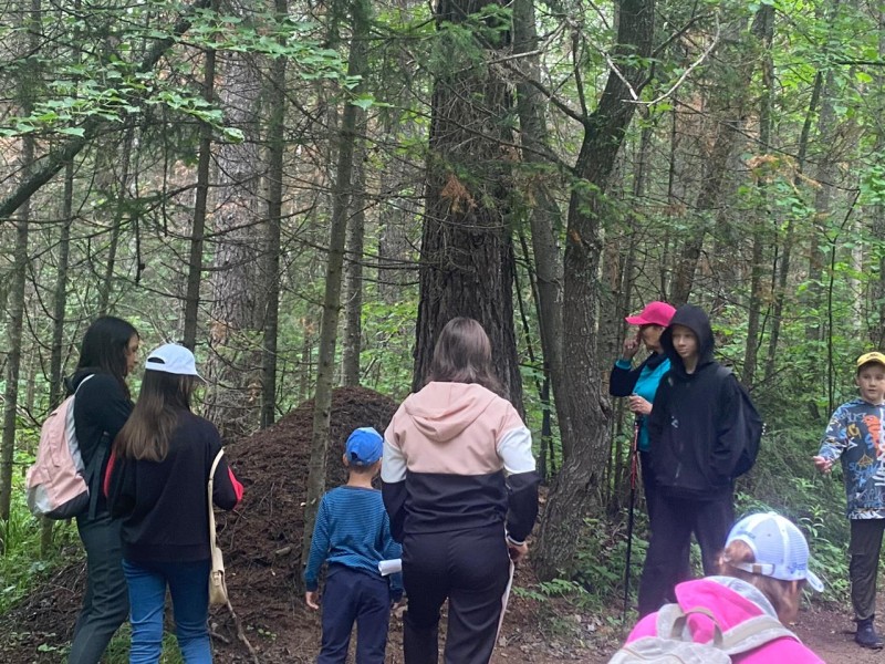 Экскурсовод нацпарка Елена Турунцева рассказывала ребятам интересные истории и легенды, связанные с таганайским лесом и его обитателями. К примеру о том, что пологая часть муравейника всегда находится на южной стороне дерева и что муравьиная кислота отпугивает даже клещей. Переходя по навесному мосту через реку Тесьму, ребята вспомнили легенду «Как поссорились Тесьма и Киолима».