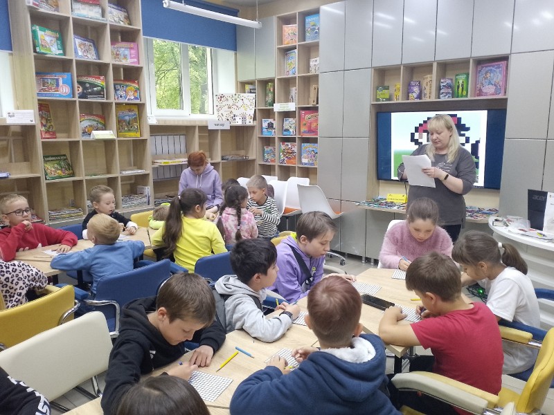 Забавные пиксельные картинки и сказочные герои встретились в детской библиотеке №15. В дни летних каникул здесь по-прежнему шумно и многолюдно. В июне библиотека активно сотрудничает с летними пришкольными лагерями.