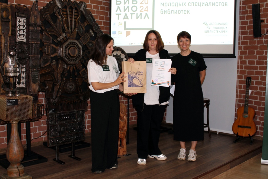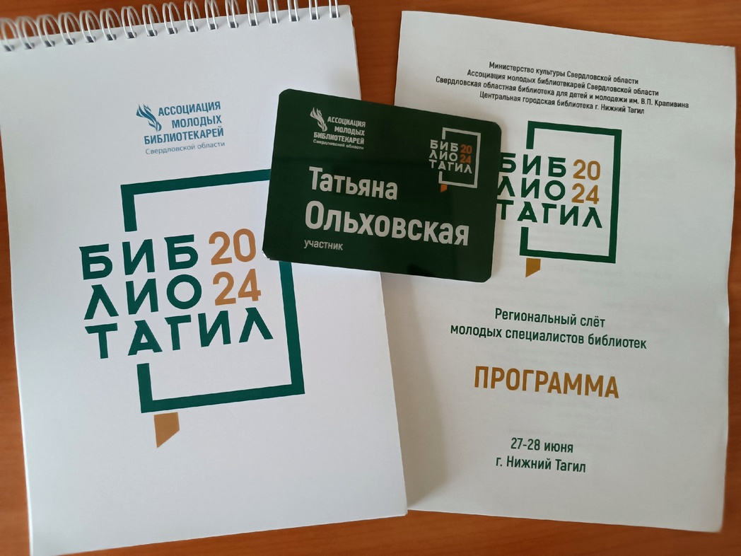 27 – 28 июня в Нижнем Тагиле прошел слет молодых библиотекарей Свердловской области «БиблиоТагил2024». В этом году на слете побывала сотрудник детской библиотеки №12 Златоуста Татьяна Ольховская. 28 июня на подведении итогов регионального профессионального конкурса, организованного Ассоциацией молодых библиотекарей Свердловской области в рамках слета молодых библиотекарей БиблиоТагил 2024, Татьяна получила специальный приз.