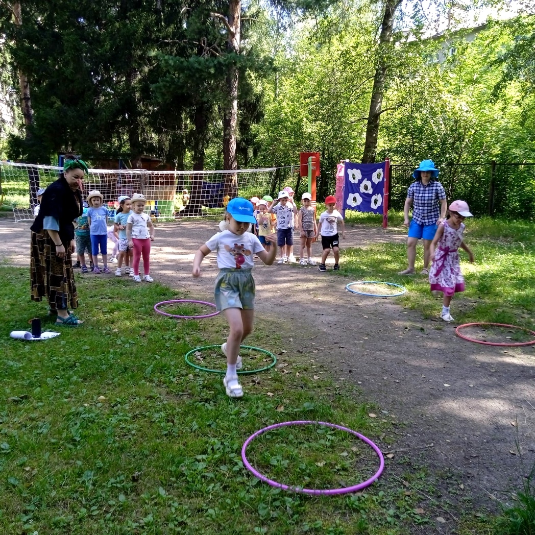 Ребята приняли активное участие в конкурсе «Фанты с ромашкой». Встав в круг, передавали под музыку ромашку, а когда музыка останавливалась, участник, у которого в руках оказался цветок, выполнял задание (рассказывал стихотворение про семью, называл 5 ласковых слов про маму и многое другое). Мальчишки и девчонки с азартом соревновались в конкурсе «Бег по кочкам», где предстояло «прыгать» по лесным возвышенностям, по которым каждый день скачет Баба Яга, возвращаясь в свою избушку. А Незнайка озадачивал детей загадками о семье и быте в стихах. Ярким дополнением к мероприятию стал танец «Солнышко лучистое любит скакать», где дети смогли поплясать от души.