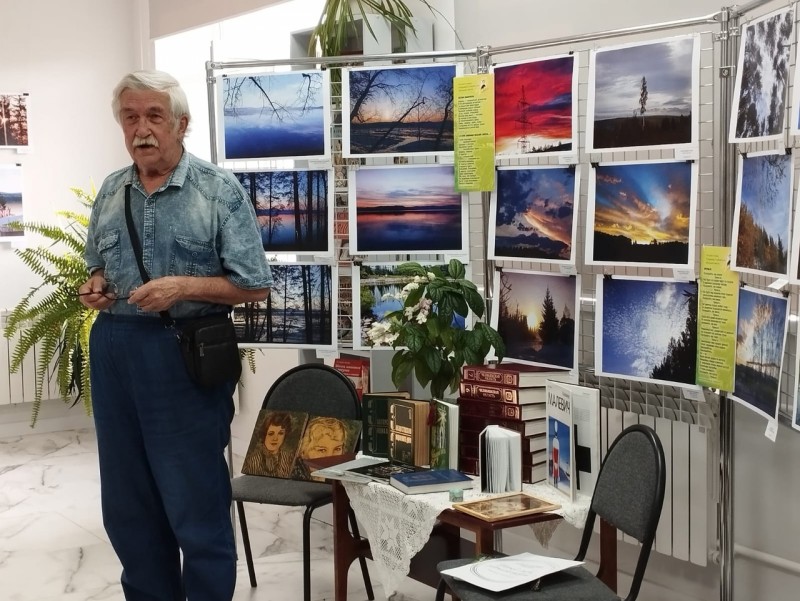 Надежда Федоровна Глыбовская – известный в Златоусте журналист, корреспондент городской газеты «Златоустовский рабочий», руководитель литературного объединения «Мартен», редактор и составитель книг. А еще она очень любит фотографировать на свой телефон. 43 фотоработы и 10 стихов своего супруга представила Надежда Федоровна на свой пятый персональный фотовернисаж. Это экспозиция любительского фото, снятого на телефон и без дополнительной обработки в графических редакторах. Гости встречи отметили необычные ракурсы златоустовского неба, пейзажей, сделанных через оконное стекло.