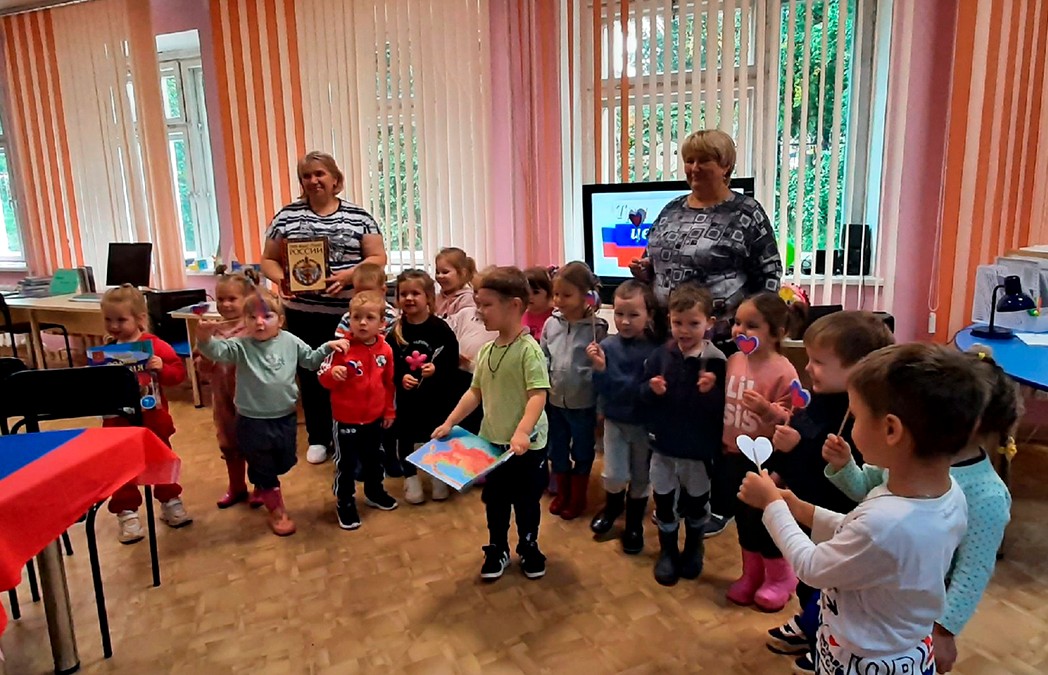 Библиотекарь Елена Белова рассказала, что в 1693 году триколор стал личным штандартом царя Петра I, а в 2000 году президент РФ Владимир Путин подписал конституционный федеральный закон «О Государственном флаге Российской Федерации», в котором говорится, что «Государственный флаг Российской Федерации представляет собой прямоугольное полотнище из трех равновеликих горизонтальных полос: верхней - белого, средней - синего и нижней - красного цвета». Вместе с ребятами разобрали, с чем ассоциируются цвета и где они могли видеть флаг.