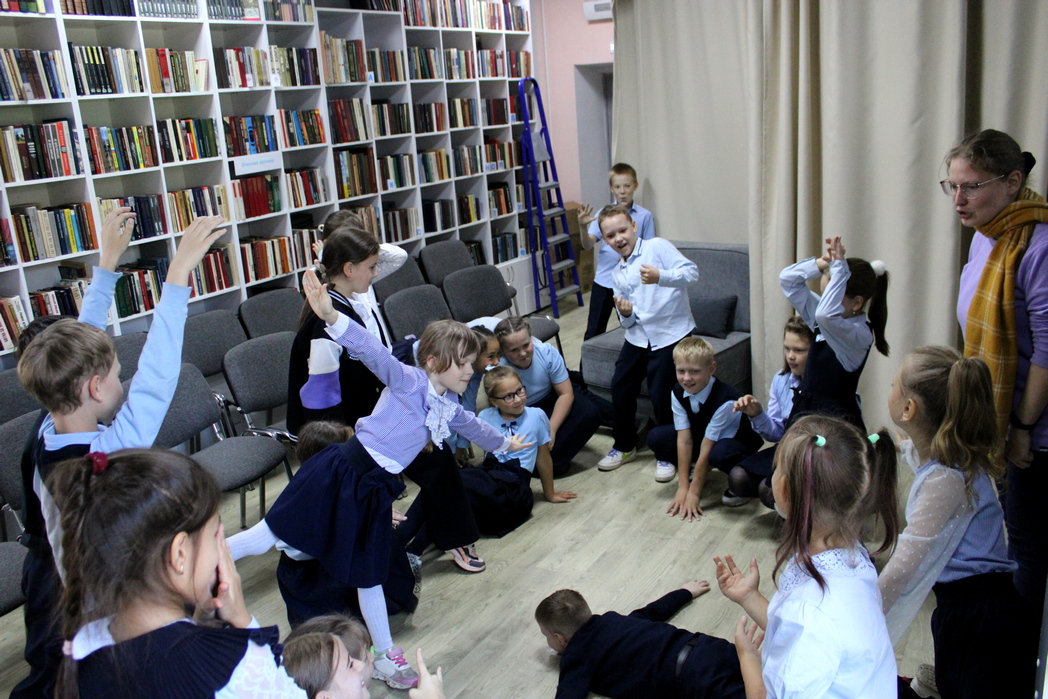 Профессия обладателя «волшебной палочки» – дирижер. Библиотекарь научила ребят дирижировать правой рукой на «два», «три», «четыре». Сыграли в «Оркестр», где школьники выполняли роль музыкальных инструментов, а стоящий в центре человек - роль дирижера. Также ребята проверили свой музыкальный слух в игре «Что это звучит?».