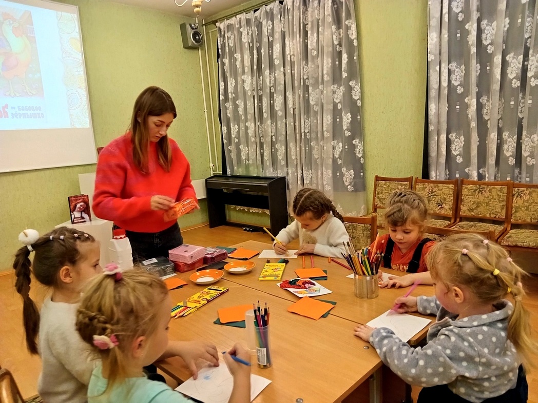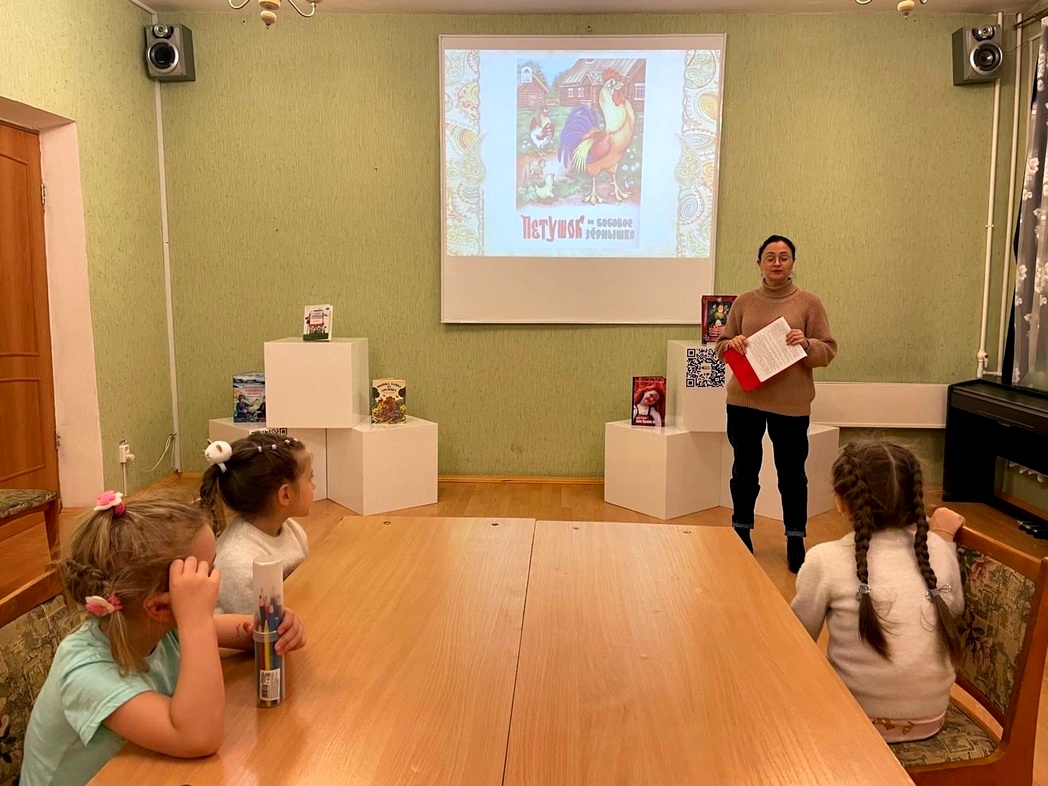 В литературно-творческом клубе «Фонарик» состоялась увлекательная встреча, посвященная знакомству с русской народной сказкой «Петушок и бобовое зёрнышко». Участники мероприятия погрузились в волшебный мир сказки, услышали интересную историю о приключениях петушка и курочки, а также активно поучаствовали в обсуждении её сюжета.