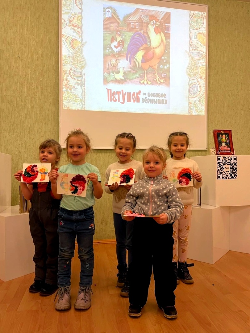 Завершилось мероприятие мастер-классом, на котором ребята создали аппликацию петушка из салфеток. Это позволило им воплотить своего героя из сказки в реальной форме и увезти с собой маленький символ встречи.
