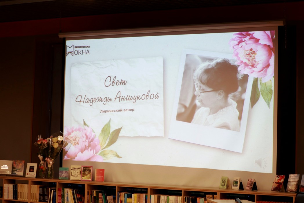 Формат вечера ведущие Наталья Красильникова и Марина Аксёнова представили в виде анкеты, которую Надежда Аншукова «заполняла», отвечая на вопросы. Между ответами звучали стихотворения Надежды Вячеславовны как в личном исполнении, так и в исполнении гостей и читателей библиотеки. Были представлены сборники поэтессы: «Белый трамвай», «Живу я словно невпопад», «Осенняя чаша», «Соло на два голоса» (в соавторстве с Юрием Тоскалевым), «Свет безмятежный», «Меж рассветом и закатом», «Взвешенные минуты».