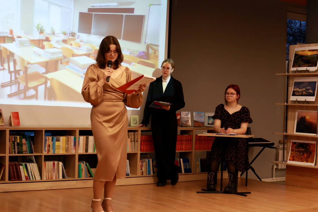 Открыли поэтическое действо участники юношеской театральной группы «МиЛиТ», которые разыграли сценку, посвящённую Надежде Вячеславовне, по работе участницы конкурса «Время читать и размышлять» Анастасии Морозовой «Эти сильные женщины».