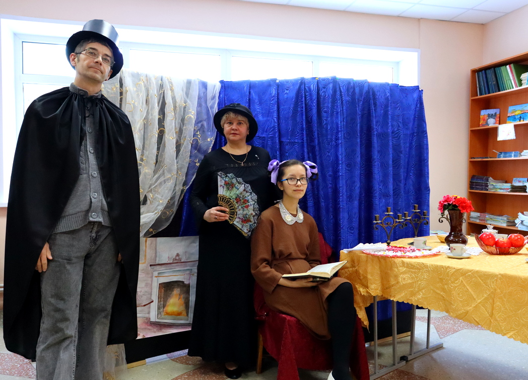 Традиции семейного чтения дворянского сословия представляла площадка «Семья XIX века». Участники квеста должны были при помощи ребусов разгадать авторов, а при помощи филворда – произведения пяти писателей XIX столетия, в названии которых упоминаются члены семьи. Необходимо было применить знания математики, чтобы определить, в каком из трех залов, на какой полке находится отгаданное художественное произведение, найти в них пазлы и в результате получить картину «Семейное чтение» шведского художника Кнута Экваллье.