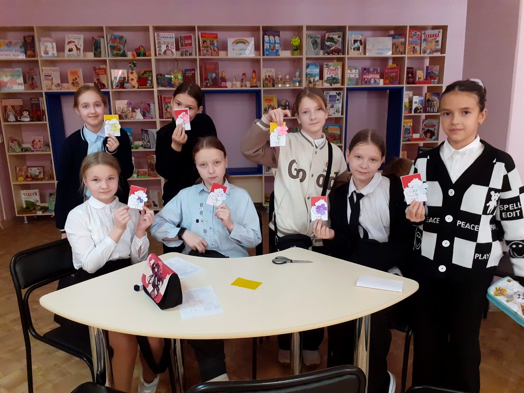 В завершении мероприятия дети сделали своими руками милые открытки для мам. С помощью наших библиотекарей из самых привычных материалов получились милые подарки для самых дорогих и любимых.