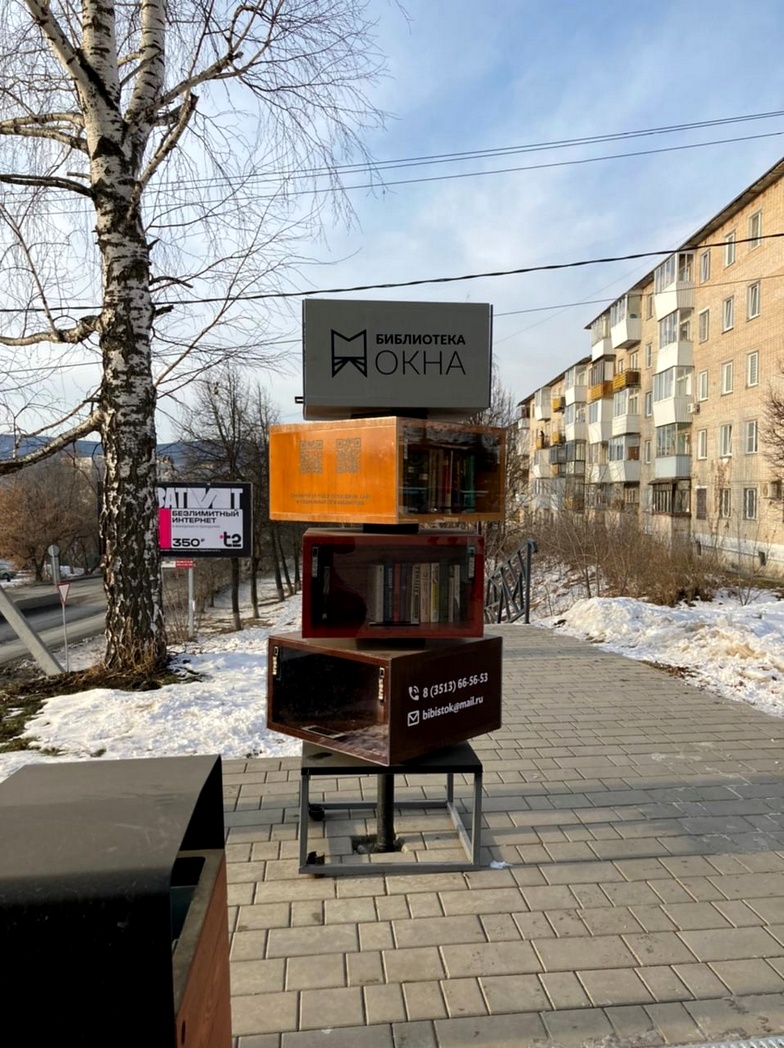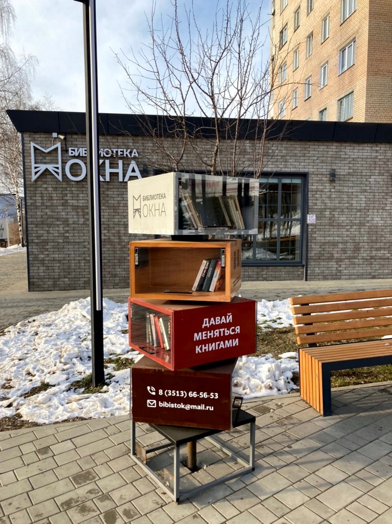 Уличная библиотека появилась в новом общественном пространстве - «карманном парке», созданном на территории возле библиотеки нового поколения «Окна» в рамках проекта инициативного бюджетирования в Челябинской области.