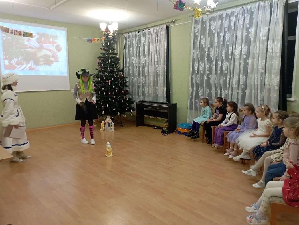 Дети окунулись в атмосферу волшебства и приняли участие в спасении самого Деда Мороза! На праздник к ребятам пришла Снегурочка, чтобы поздравить всех с наступающим праздником. Но вдруг появилась Злючка-колючка и сообщила важную новость: Леший заколдовал Дедушку Мороза, и расколдовать его можно, только выполнив волшебные задания: спеть любимую песню Деда Мороза, помочь Дедушке прокатиться по зимним сугробам, станцевать «Танец Зимы», разгадать новогодние загадки.