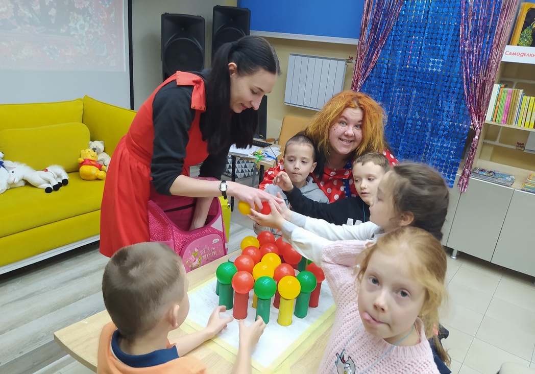 В гостях у Бабы Яги и хитрого Кота дети играли в новогодние фанты, чтобы развлечь старушку. А самых ловких и музыкальных ждали в квартире «Странности начинаются». Домовой Кузька и девочка Наташа устроили весёлые конкурсы по сбору «олюлюшечек» – лакомства для домовых - и спели любимые новогодние песни. За выполнение заданий в каждой квартире дети получали ёлочные шарики с изображением сказок.