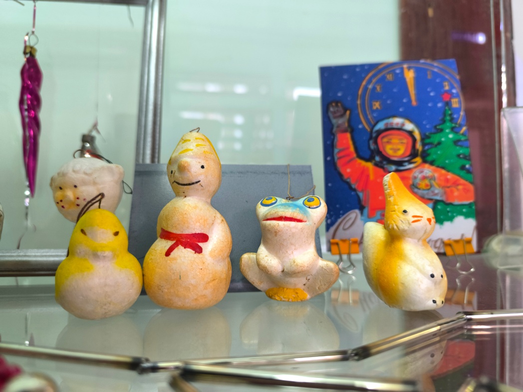 Эти стеклянные, картонажные, монтажные и ватные зверюшки, шарики и сосульки вызывают массу эмоций. Каждый из присутствующих увидел игрушки своего детства и узнал о них много интересного.