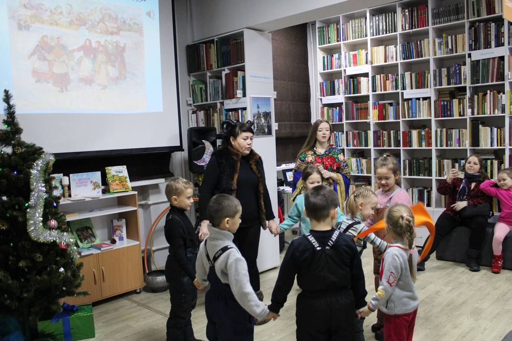 В дни между Рождеством и Крещением в библиотеке семейного чтения № 2 «Аист» для ребят из детских садов №5, №33, №95 и для учащихся начальных классов школы №37 была подготовлена и проведена фольклорно-игровая программа «Настали Святки – запевай колядки».