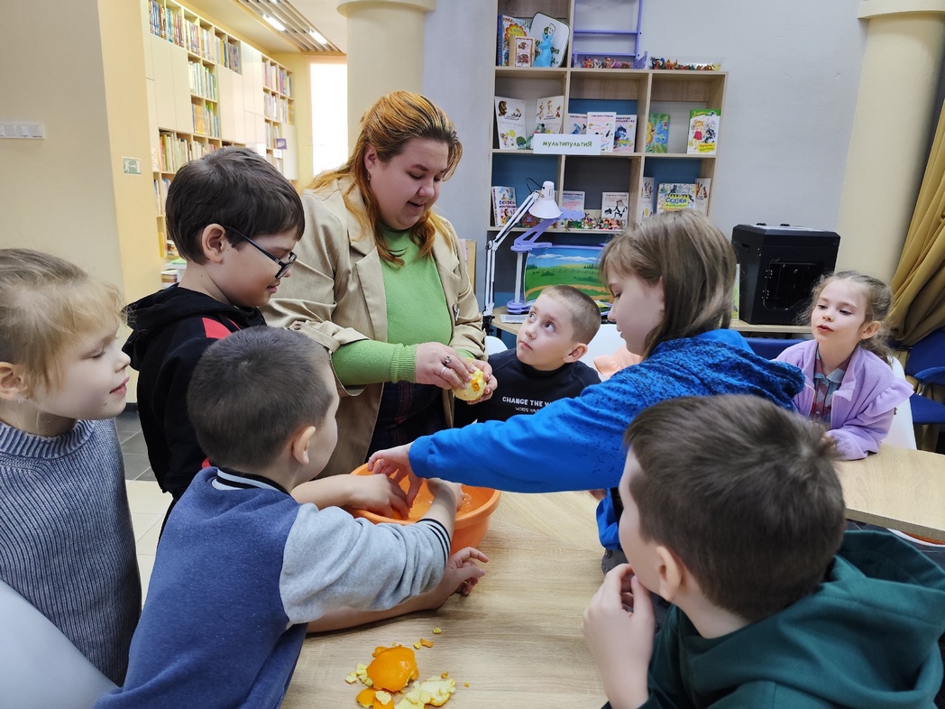 Вместе с библиотекарем Юлией Артемьевой юные исследователи прошли несколько станций, каждая из которых была посвящена определённой области науки и не только. Так, на станции «Логическая» дети решали интересные задачи и головоломки, на станции «Изобретательная» вспомнили изобретения русских учёных, на станции «Экспериментальная» провели опыты с безопасными реагентами.