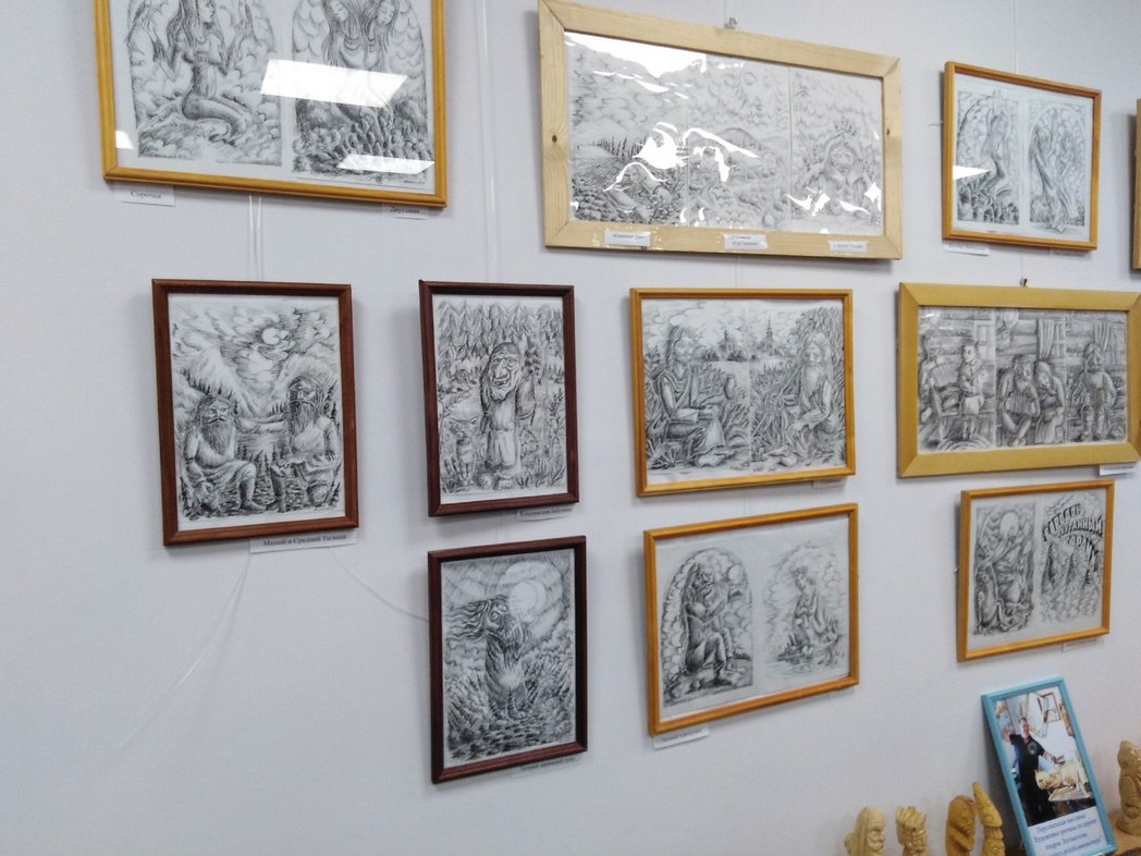 Участники встречи увидели разнообразные изделия – от небольших фигурок из дерева до колоритных ажурных панно в стиле ксилографии – гравюры на дереве, а также чудесные фотографии с видами Златоуста и сказочными сюжетами. Экспозицию дополнили книги по резьбе и работе с деревом.