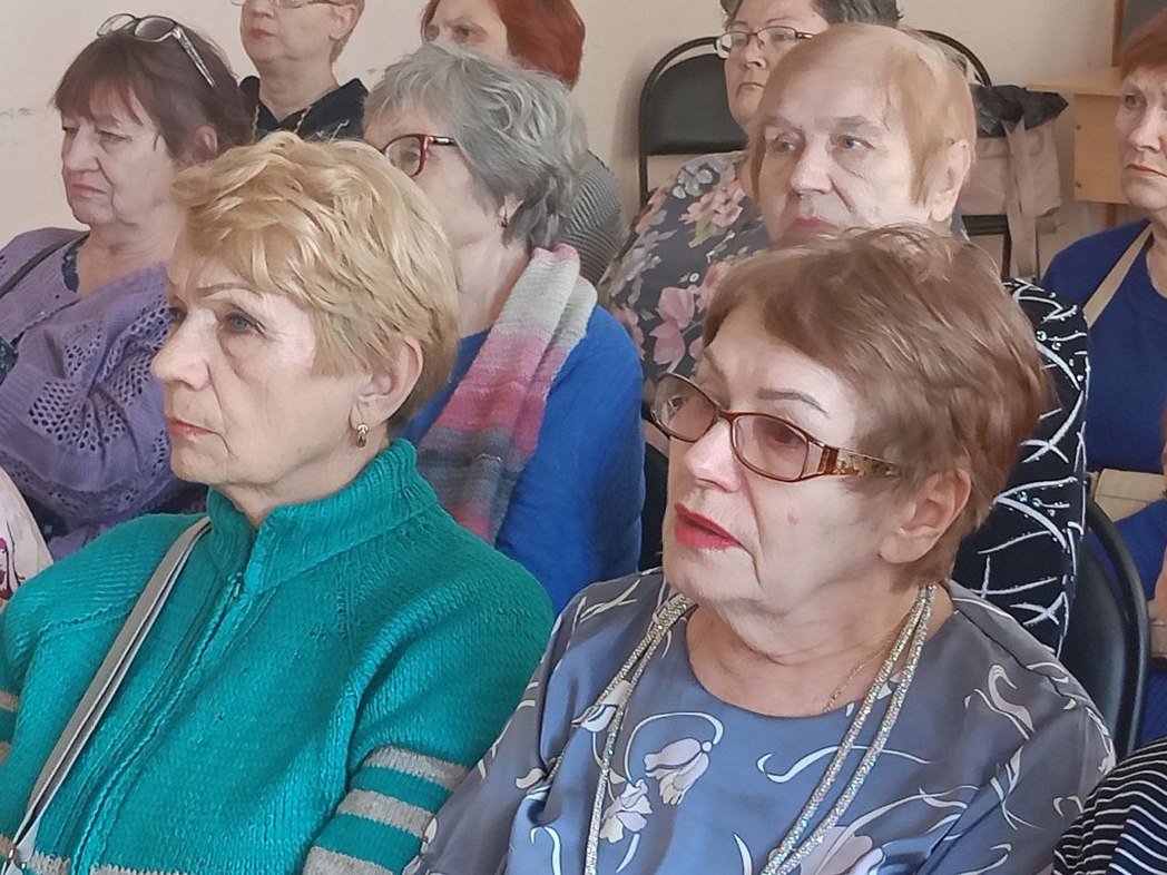 Участники литературной встречи, люди старшего поколения, внимательно слушали рассказ ведущей, которая познакомила с биографией писателя, узнали много интересных фактов о жизни и творчестве писателя. О том, как он после 9 класса отправился добровольцем на фронт, участвовал в боях под Смоленском, был демобилизован и стал писателем-фронтовиком.