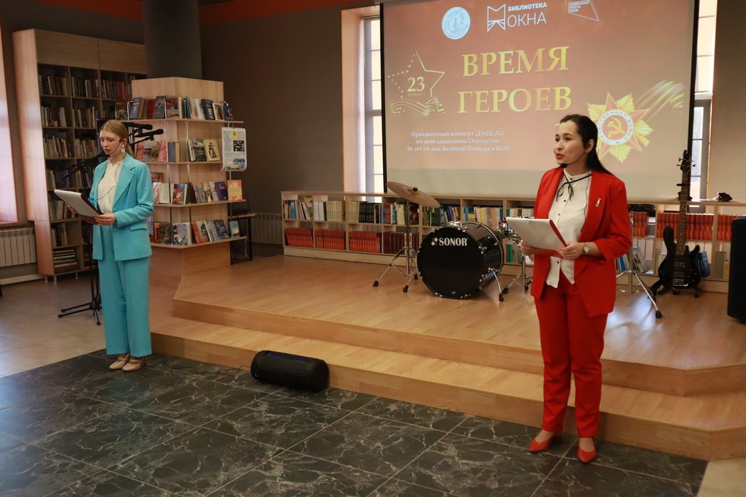 Праздничный концерт Детской музыкальной школы №2 «Время героев», посвящённый году защитника Отечества и 80-летию со дня Великой Победы, стал особенным событием, организованным библиотекой №5 «Окна». Выступающие и зрители пришли отдать дань уважения мужеству и доблести защитников Родины.