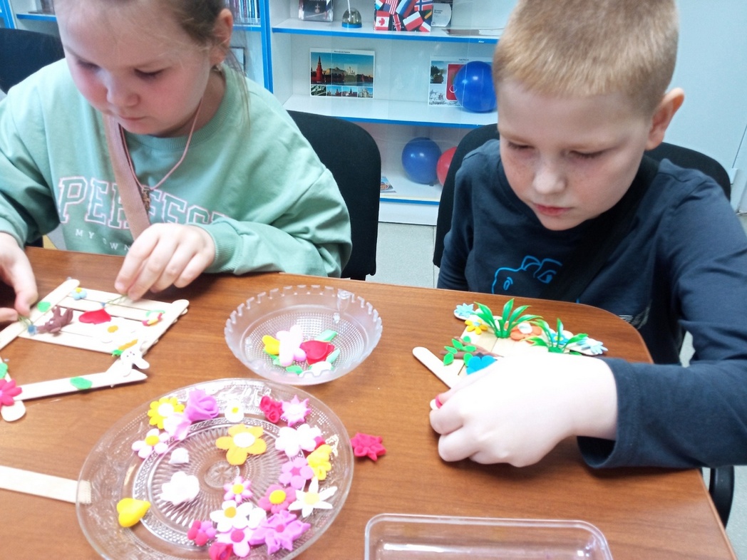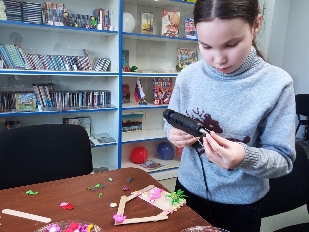 В заключение мероприятия было предложено принять участие в весеннем мастер-классе «Создаем уютные домики своими руками». Из деревянных шпателей и различных украшений были изготовлены оригинальные и яркие открытки, в которые читатели вложили свои старания.