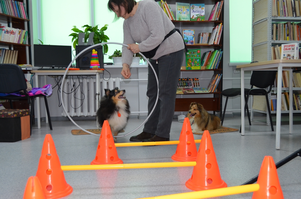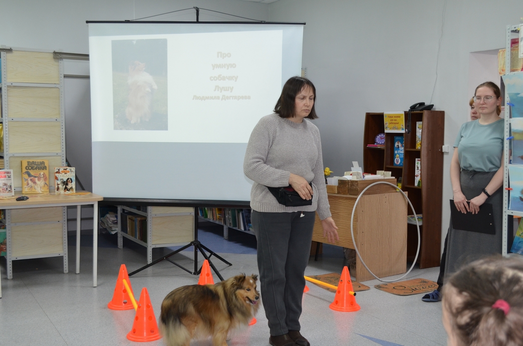 У Людмилы Дегтяревой много четвероногих питомцев. О своей любимице она пишет книгу под названием «Про умную собачку Лушу». К сожалению, собачий век недолог. Талантливая Луша уже не может выступать на публике. Поэтому в гости в библиотеку пришли более молодые собаки Арья и Ула. Юные артистки впервые выступали на публике, временами смущались и отвлекались на вспышки фотоаппарата. Но все же смогли продемонстрировать различные почти цирковые трюки: преодолевали барьеры, приносили предметы, исполняли упражнение «Змейка». Старшая из собачек Арья удивила всех умением собирать игрушку пирамидку. А вместе они подарили много положительных эмоций юным зрителям.