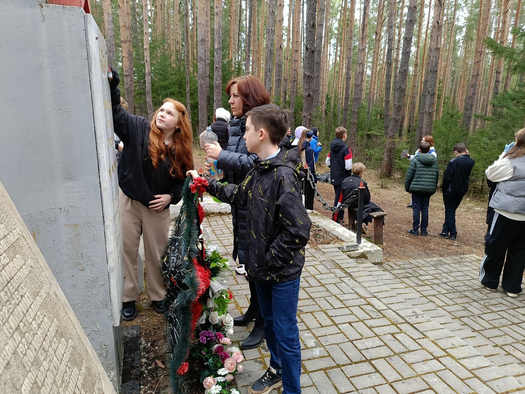 Собравшиеся у мемориала воинам госпиталя № 3114 участники акции почтили словами благодарности тех, кто отдал жизни за Родину. Волонтёры, школьники и библиотекари провели субботник: очистили территорию от прошлогодней травы и листвы, аккуратно протерли мемориальные плиты от пыли и грязи.