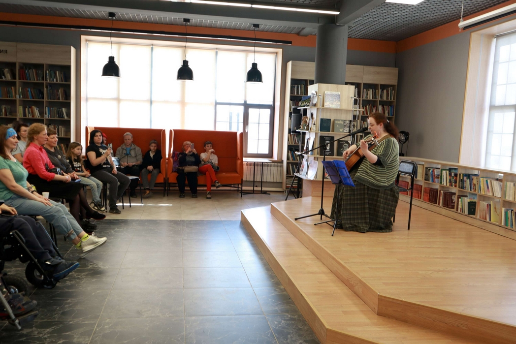 В библиотеке №5 «Окна» прошел творческий вечер бард-рок музыканта и поэтессы Александры Павловой, известной под псевдонимом «Кошка-Сашка».