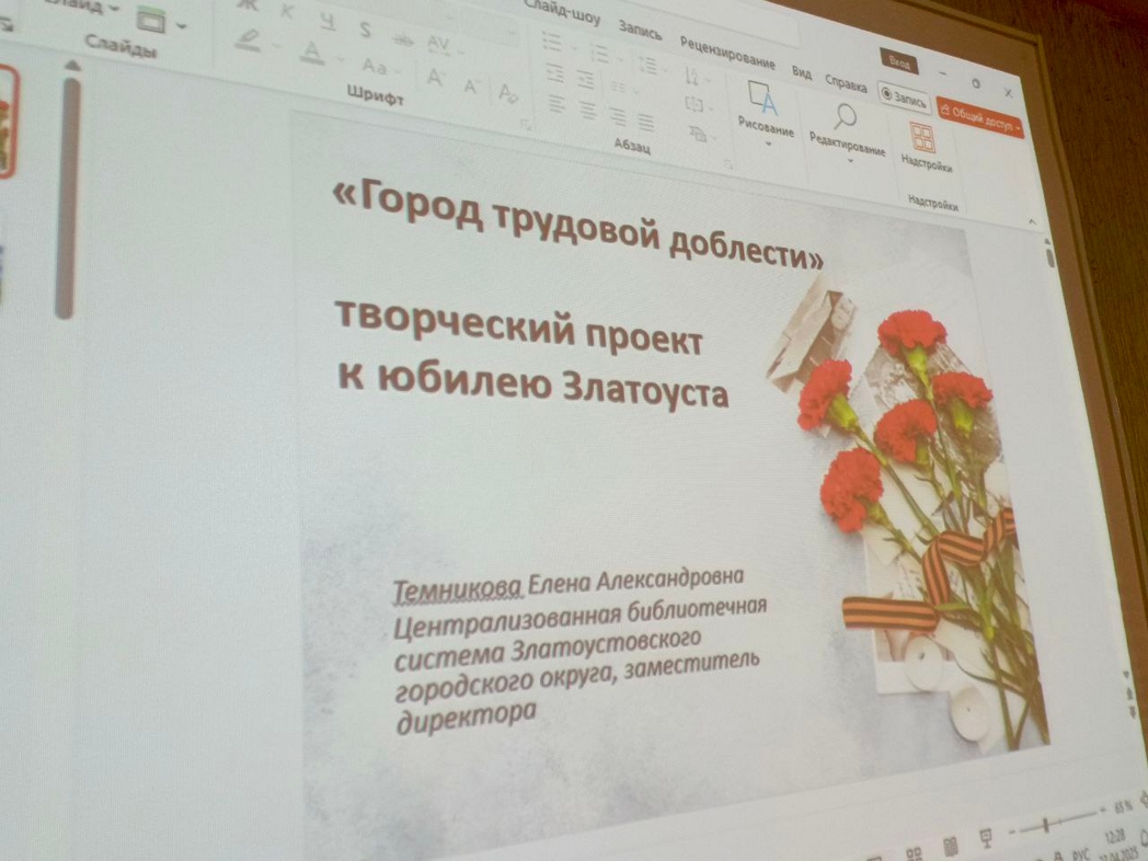 Уникальный издательский проект «Символы Златоуста на память» представила заместитель директора Елена Темникова. В процессе реализации данного проекта к юбилею города коллективом библиотечных специалистов разработан и издан комплект открыток, посвященных теме «Златоуст – город трудовой доблести». На нарисованных в графическом стиле открытках – городские здания и памятники, связанные с тружениками тыла и героями труда.
