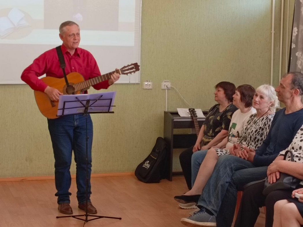 Музыкальный подарок Владимиру Курбатову преподнесли члены городского Клуба самодеятельной песни им. Ю.Зыкова, исполнив несколько песен на стихи Ю.Зыкова и В.Курбатова. Владимир Николаевич, в свою очередь, сам исполнил две красивые лирические песни.