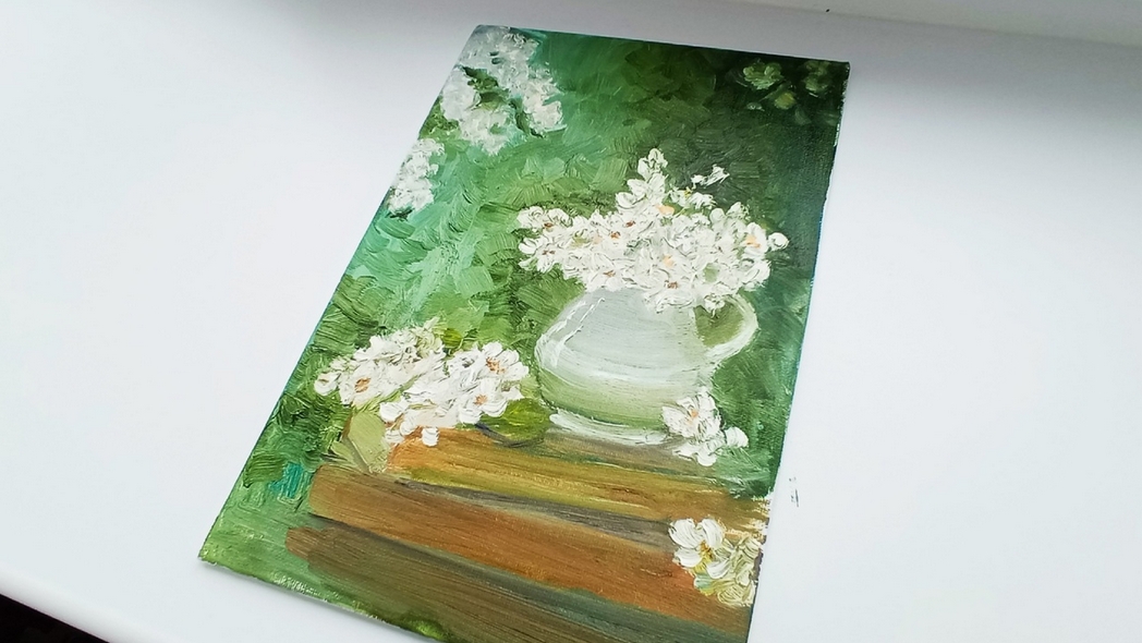 Участники встречи сами смогли почувствовать себя художниками. Масляными красками сделали совместную работу «Весенний букет». С помощью лотереи выбрали счастливого обладателя этого шедевра – им стал один из участников. Гости встречи получили еще один сюрприз от художницы, рукотворное издание «Крещенские сказки». Сказки написаны и проиллюстрированы друзьями, увлеченными живописью. Получилась добрая уникальная книжка!