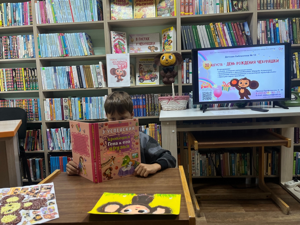 20 августа — день рождения Чебурашки, любимого героя детских книг Эдуарда Успенского. Писатель сам назвал эту дату: 20 августа 1966 года вышла первая книга о приключениях Чебурашки. В этот день библиотека №13 стала местом, где весело отпраздновали День рождения Чебурашки.