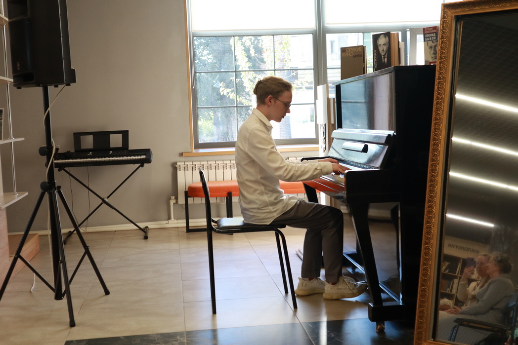 Музыкальным подарком стало выступление студента колледжа культуры при ЮУрГИИ им. Чайковского Александра Каренгина, исполнившего на фортепиано собственное произведение. Дополнила программу ведущая Марина Аксёнова, подарив слушателям вокальный номер с песней «Оберег» группы «Мельница».
