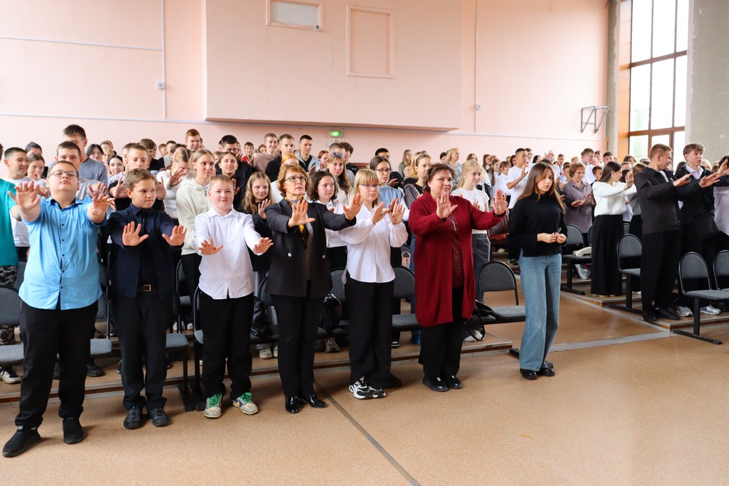 Минутой молчания ребята почтили память погибших заложников. Взявшись за руки, они продемонстрировали свою сплоченность в борьбе с терроризмом и дружно проскандировали: «Мы говорим терроризму – нет!».