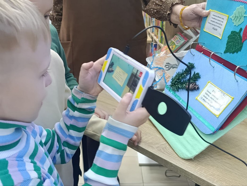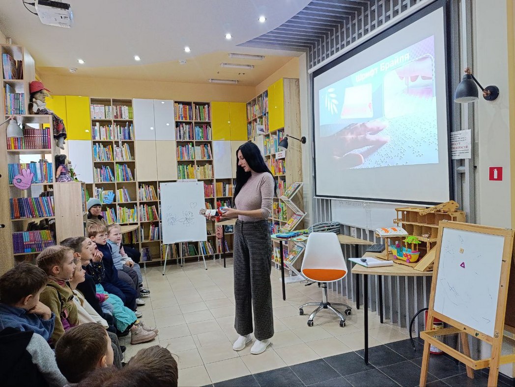 Завершением встречи стало знакомство с необычными книгами для слепых и слабовидящих читателей: библиотекарь показала ребятам специальные издания с рельефными изображениями, шрифт Брайля и увеличительные устройства, помогающие читать обычным способом.