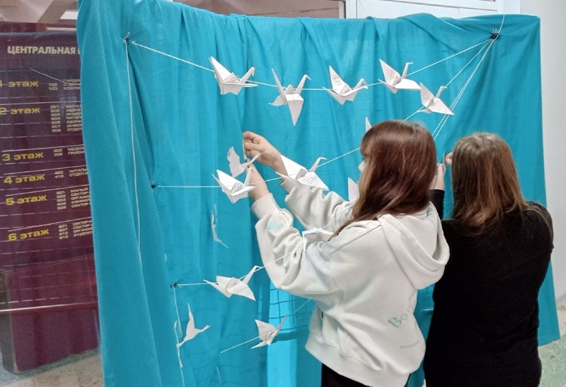 Читатели библиотеки узнали о том, как в этой памятной дате переплелись имена великого дагестанского поэта Расула Гамзатова и маленькой японской школьницы Садако Сасаки. В этой истории есть старинная кавказская легенда и песня «Журавли», война и мир, жизнь и смерть, гибель и бессмертие... Также участники узнали, почему именно белые журавли стали символом скорби и надежды.