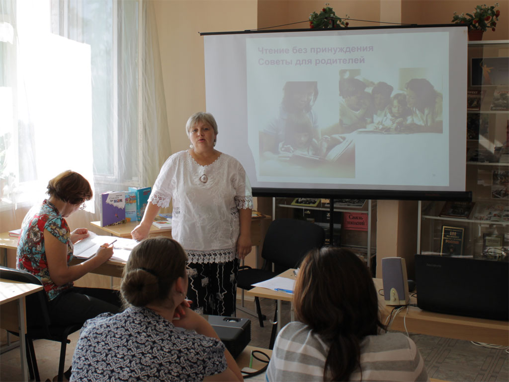 - О различных методиках воспитания талантливого читателя, разработанных специалистами в области детского чтения (библиотекарями, педагогами, психологами) рассказала зав. ОМО Выпряжкина Е.П. Библиотекари не только получили множество подсказок к ежедневной работе о том, как помочь маленькому человеку стать большим читателем, но и разбирали ситуативные задачи, рассуждали о том, можно ли «научить любить читать».