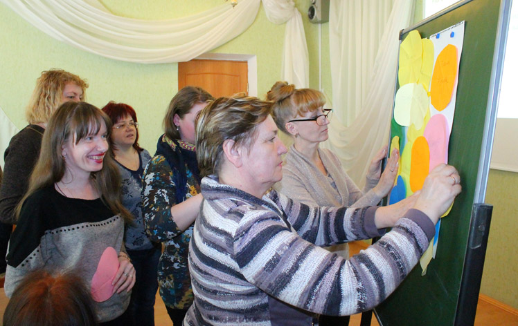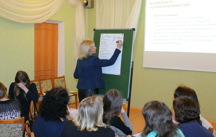 В ходе мозгового штурма «Миссия» четыре команды сотрудников выразили свое видение миссии ЦБС через оригинальные образы, символы, метафоры. На осознание значимости корпоративных ценностей организации и жизненных ценностей каждого участника практикума нацелена деловая игра «Аукцион ценностей». Посредством метода кейса «Землетрясение» сотрудники ЦБС попробовали принять решение в искусственно созданной проблемной ситуации. Игра «В группе» помогла разобраться в том, какой вес имеет отдельный сотрудник в коллективе, какое место он занимает или хочет занимать.