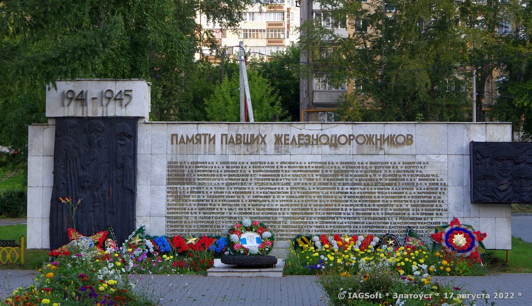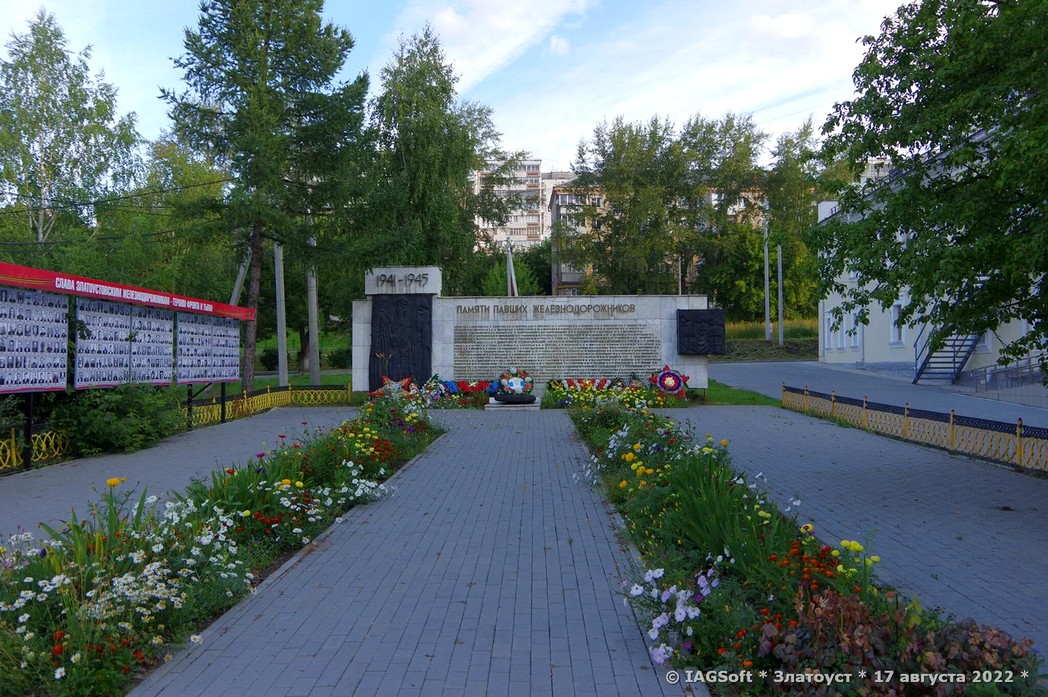 Мемориальная стена в память о златоустовских железнодорожниках, погибших в годы Великой Отечественной войны. Расположена на улице имени П. П. Аносова. Открыта 9 мая 1985 года. Скульптор В. П. Жариков.