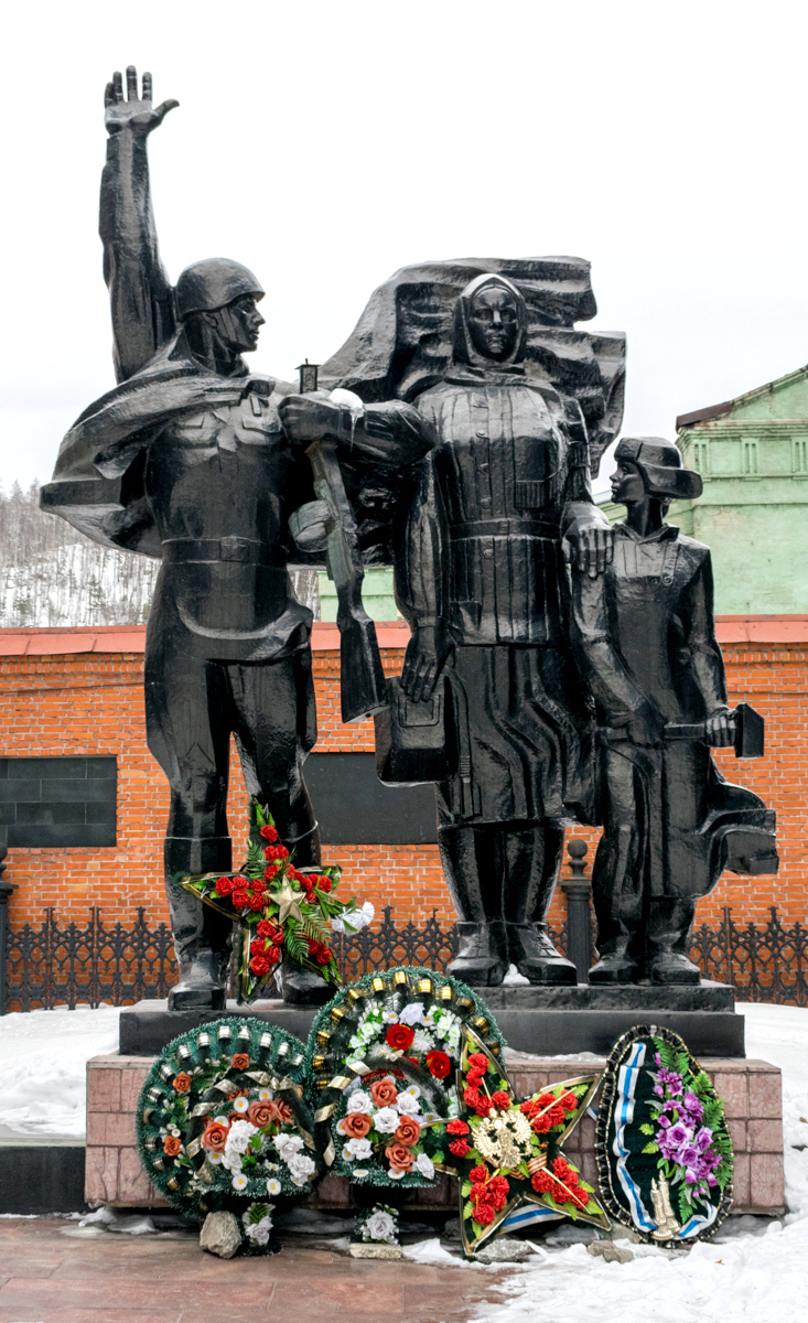 В разных районах Златоуста установлены скульптурные композиции, посвященные боевому и трудовому подвигу жителей города. Одна из них находится на площади III Интернационала, за «Бастенькими воротами», между зданиями Оружейной фабрики и Арсенала. Посвящена композиция героям фронта и тыла завода имени В. И. Ленина. Её открытие было приурочено к празднованию 40-летия Победы советского народа в Великой Отечественной войне. Торжественный многолюдный митинг состоялся 7 мая 1985 года.
